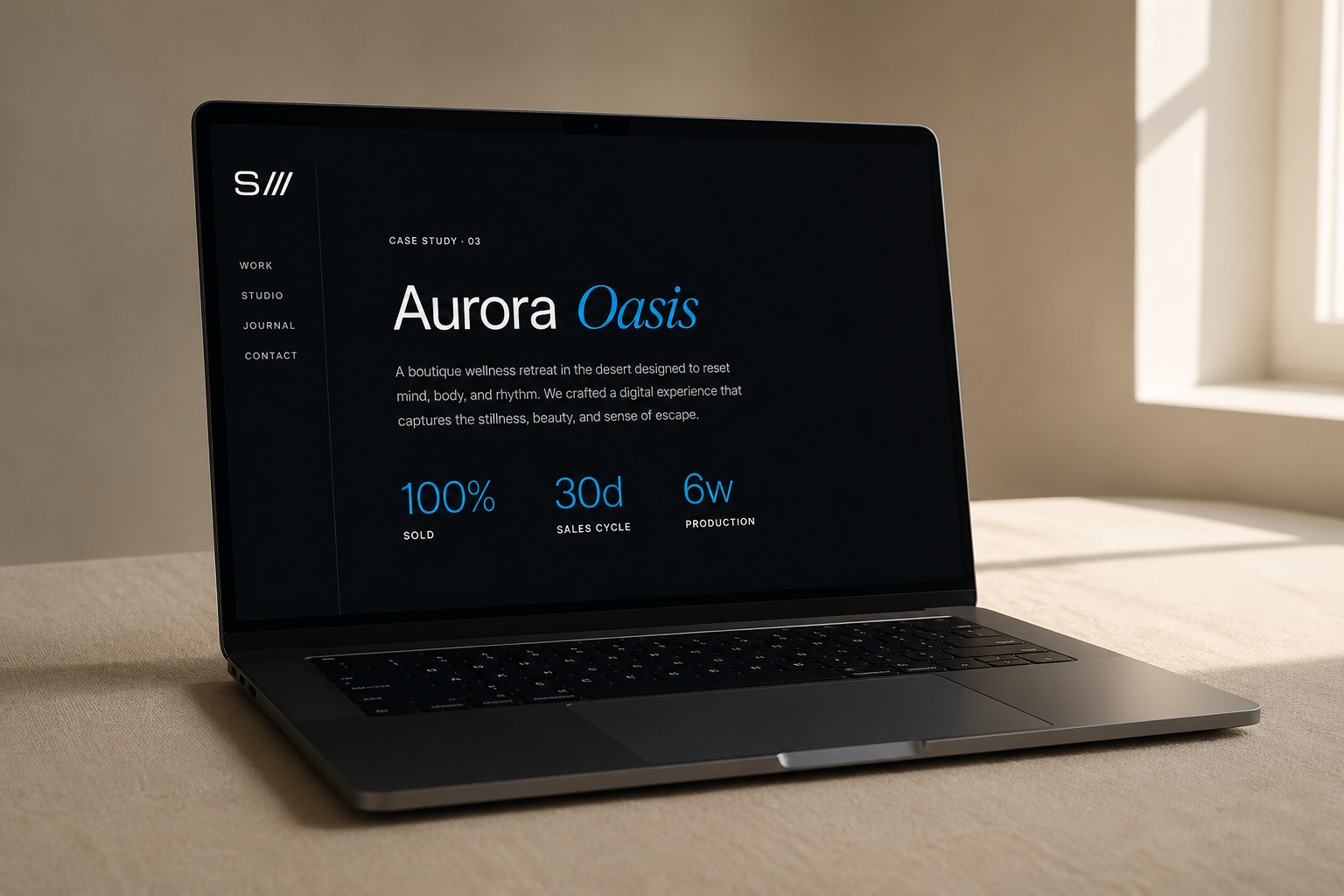 Da história à aplicação, do conceito ao mockup. O brand system é lido na ordem em que foi construído: primeiro o porquê, depois o como, depois o onde, no final a chamada.